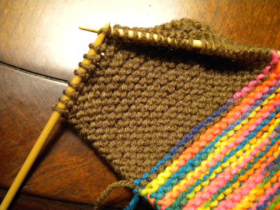 Turn work to front side. PU the same # of garter ridge sts on the righthand side of that same leg with your right needle.